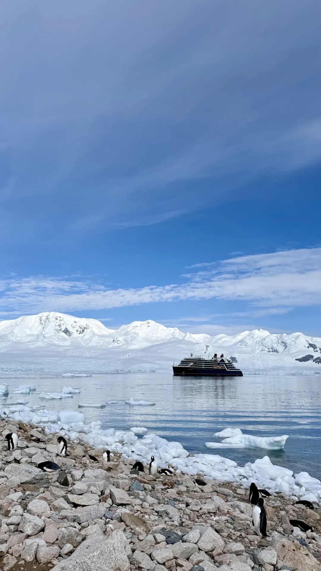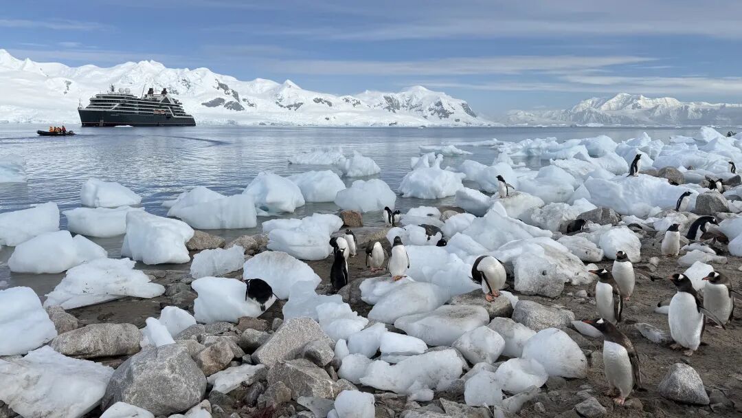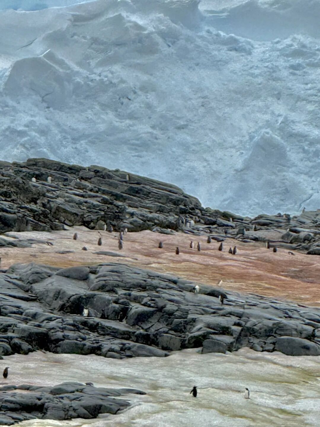 本来想,如果时间紧,登陆就不去了吧。但事实证明,这一天的登陆非常重要——近距离接触了漫山遍野的企鹅(远处就是我们的游轮)!