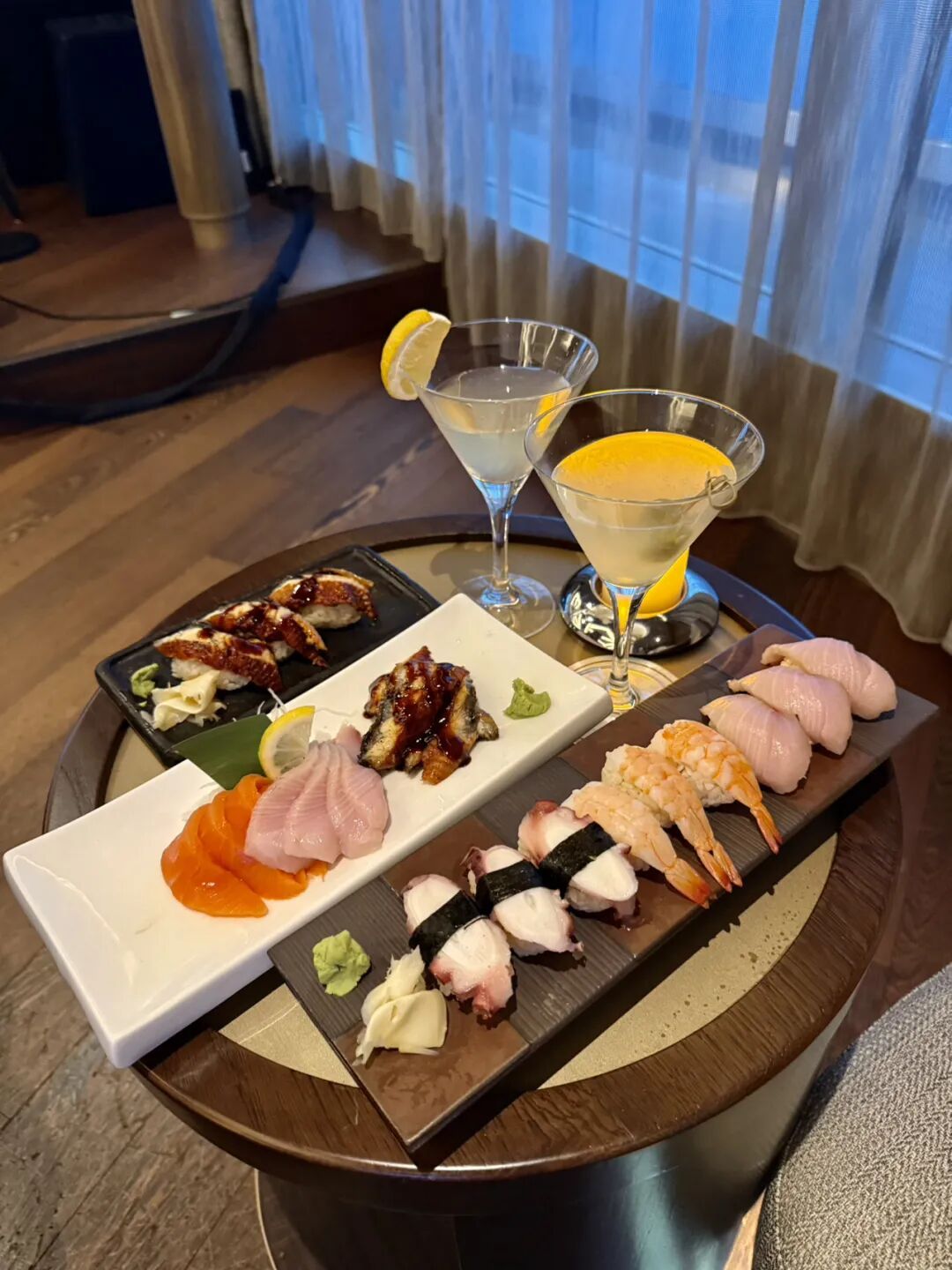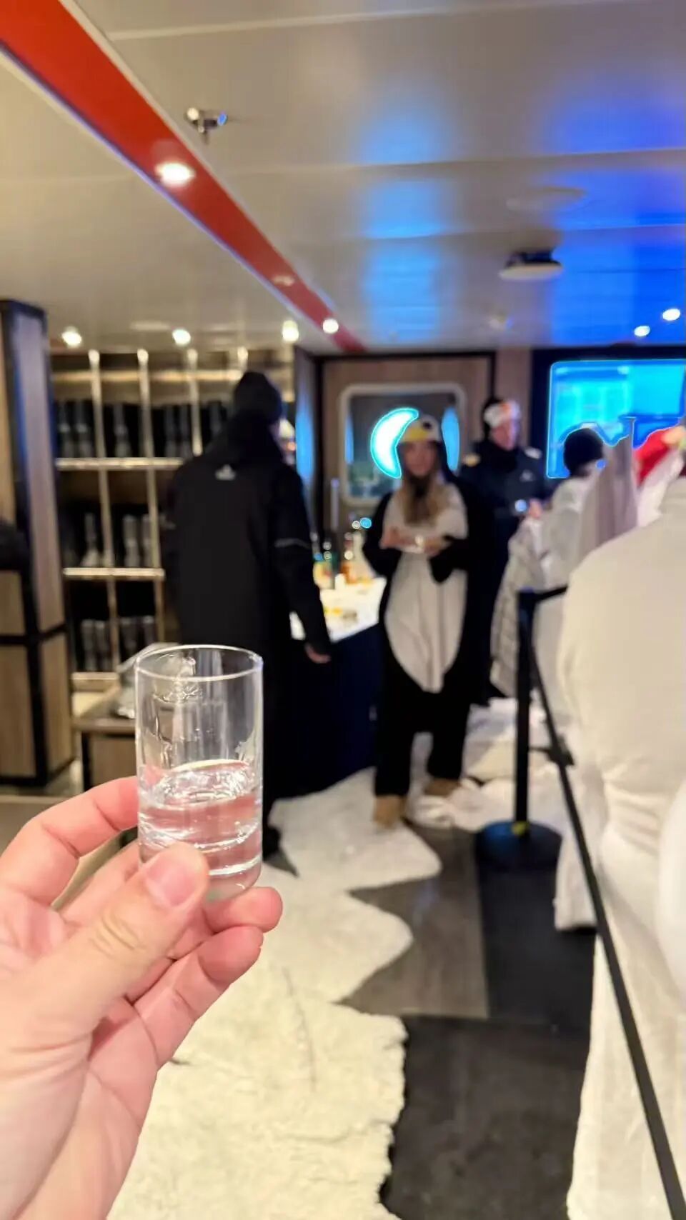 这家酒吧是全船营业到最晚的:23点,供应各种威士忌、白兰地、清酒,以及一些寿司和刺身。