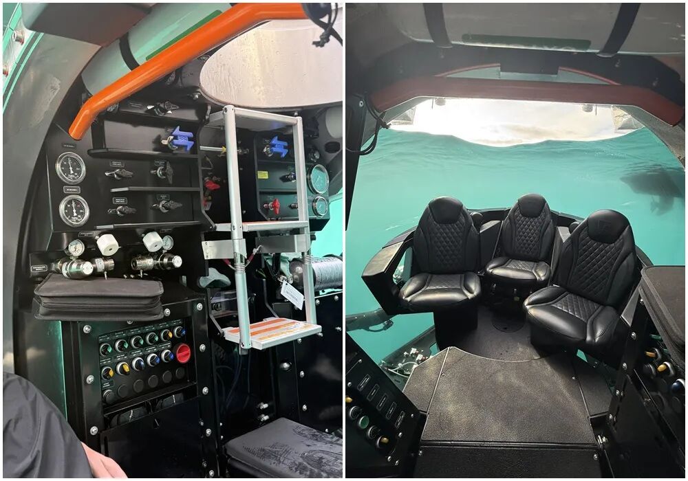 潜水艇内部,等到下潜后,这三个椅子就会转过去面对观景舱: