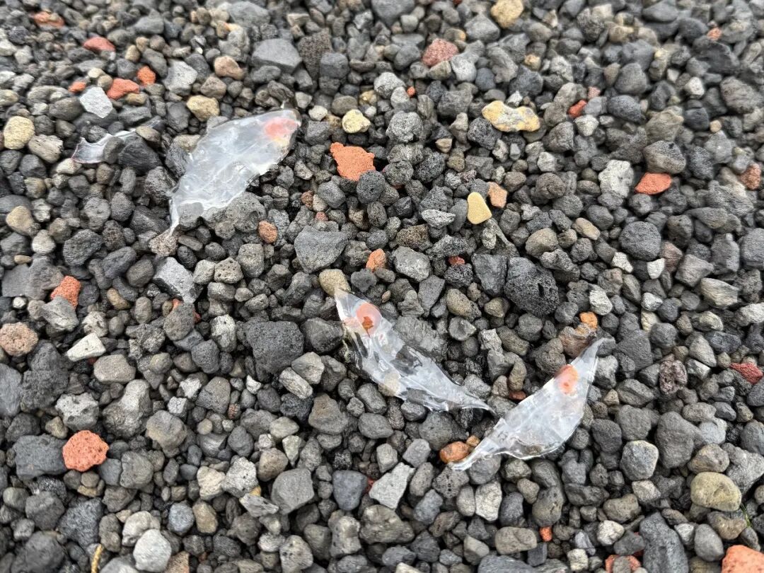 岸边有不少透明的“塑料残渣”——走进一看,其实是一种软体动物,身体透明,摸起来像果冻,那块橙色的部分不是它的眼睛,是它的消化腺。