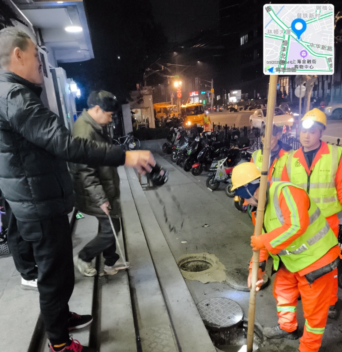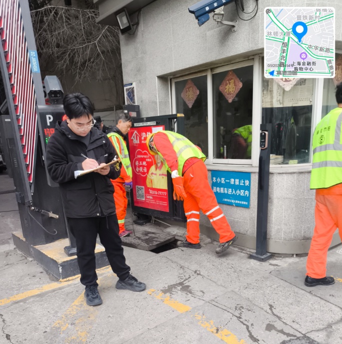 为缓解居民困境,各方力量持续发力,为管道疏通按下“加速键”。2025年2月,在天目西路街道和华丰居民区党总支的协调下,静安区市政工程和配套管理中心(以下简称市政中心)带领专业队伍,组织大规模专业疏通,暂时缓解了堵塞问题,并承诺随叫随到保障居民生活。