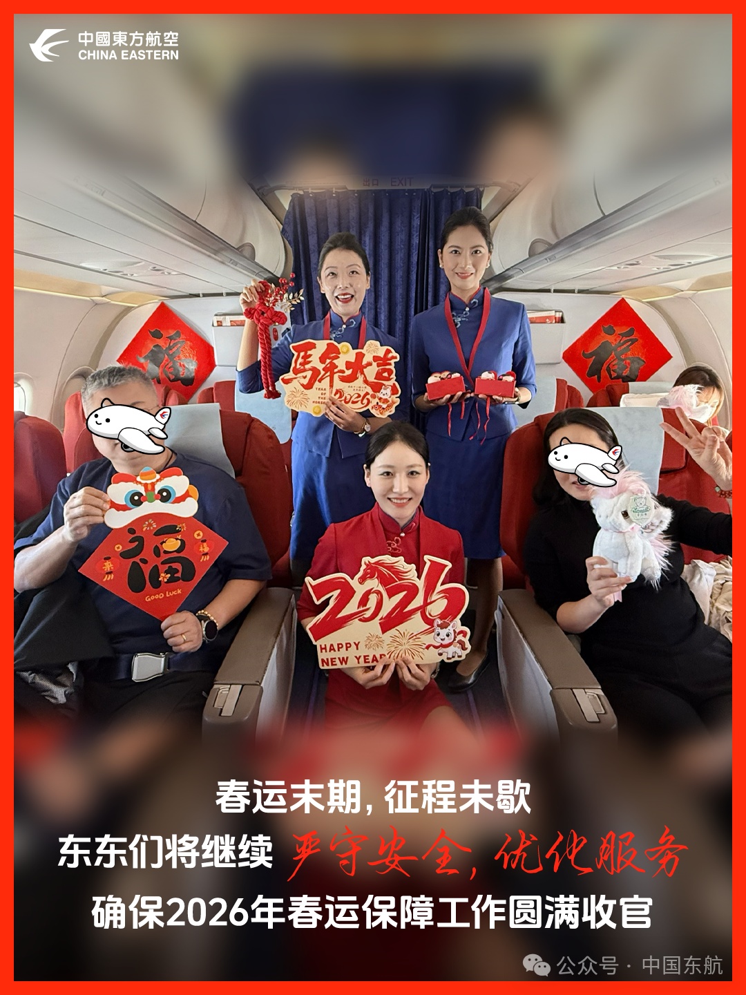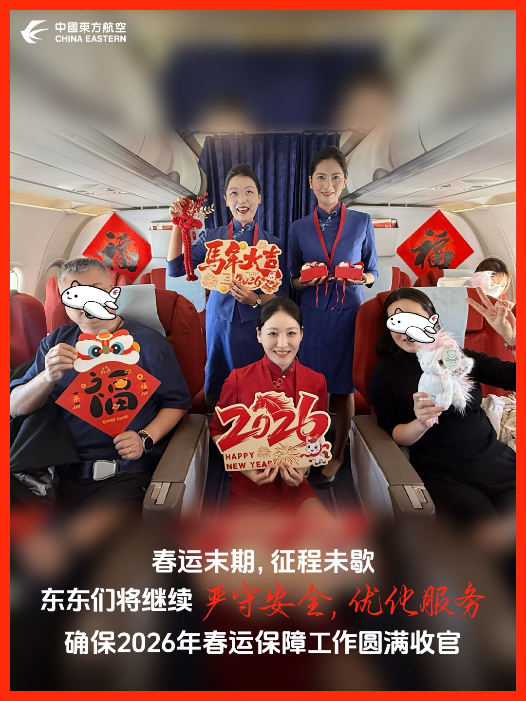 [爱心]致敬每一位坚守岗位的东航人,你们用专业与真情,温暖了每一段旅途,也守住了每一份沉甸甸的信任。春运即将结束,守护从不“打烊”,中国东航始终在您身边,陪您奔赴每一场山海与团圆~