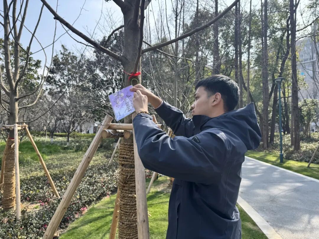 来自上海电力大学的李潇桐是其中一员。他站在自己认养的白玉兰树下,语气坚定:“今年是白玉兰40岁,我能认养一棵,感觉特别有缘分。以后我会常来守护它,看着它开花、长大。”他说,这几年上海的城市环境越来越好,绿色空间越来越多,作为年轻人,也想用自己的方式为城市添一份绿。