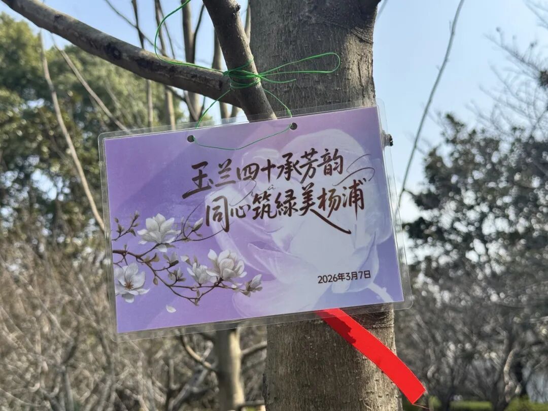 今年是白玉兰被确立为上海市市花40周年。在焕然一新的杨浦公园玉兰庭,十余位市民代表参加了“玉兰四十承芳韵・同心筑绿美杨浦”认建认养挂牌仪式。