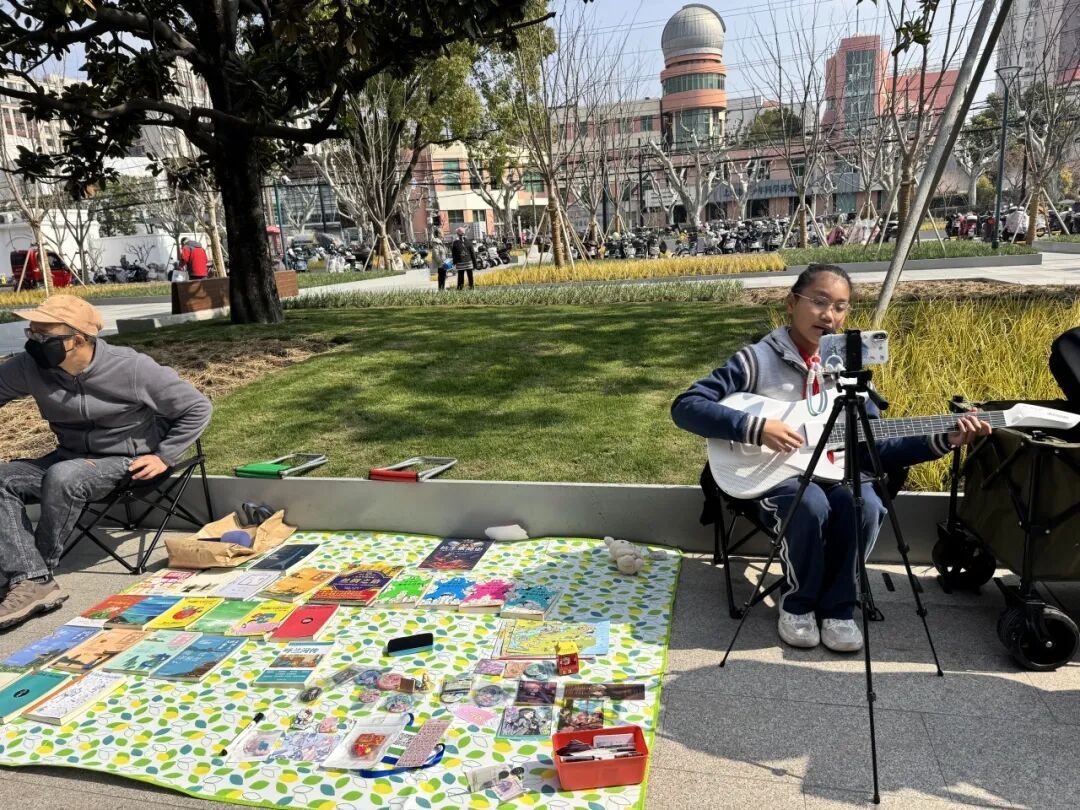 春回大地,玉兰含苞。3月7日,杨浦公园里传来一阵阵稚嫩却有力的吆喝声:“走一走看一看,助力环保事业,让爱心无限循环!”五年级小学生赵泳臻站在自己的摊位前,卖力地为爱心义卖“代言”。