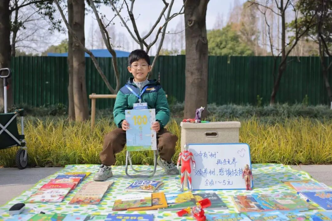 来自杨浦区的30组亲子家庭化身“大小摊主”,把家里的闲置玩具、书籍、文具摆上摊位,吆喝声此起彼伏,热闹得像一个小型集市。赵泳臻是其中最卖力的一位,他的摊位前围满了人,成交声不断。“我今天卖了不少东西,特别开心!这些钱用来统一认养树木,我觉得特别有意义。”赵泳臻擦了擦额头的汗,笑得一脸骄傲。
