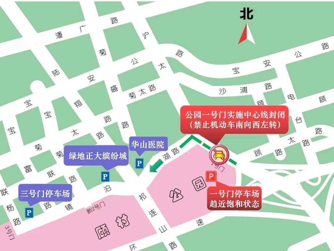 2026年“上海樱花节”于3月9日至4月9日在上海宝山顾村公园内举办,上海市公安局宝山分局为您奉上赏樱游园出行攻略。 今年顾村公园打破传统赏花模式,创新推出“景随花移”夜间赏樱活动。根据早樱(3号门区域)、中晚樱(2号门区域)的花期进程,动态调整光影布景核心区域: 3月9日至3月20日,延时开放三号门区域至夜间21:30; 3月21日至4月9日,延时开放二号门区域至夜间21:30。 为保障游园市民夜间赏樱的便利与安全,宝山警方将视情适当延长公园周边道路的临时停车时间。 鉴于停车资源有限,建议广大市民尽量选择公共交通、共享单车等绿色出行方式,共同营造安全有序的赏樱交通环境。 地铁 7号线、15号线:顾村公园站(5号口) 出站后向西步行300余米就可到达公园2号门 警方提示:地铁出入口会根据客流变化情况采取限分流的措施,以现场工作人员引导为准。 公交线路 527路、528路、963路、1604路、1605路和宝山29路等公交车线路可至公园1、2号门。 自驾线路 1号门:沿南北高架、逸仙高架转S20沪太路至1号门停车场 2号门:经祁连山路隧道至镜泊湖路到达公园2号门周边停车场 3号门:沿S7沪崇高速宝安公路出口经宝安公路至联杨路到达3号门停车场 祁连山路隧道禁止行人、非机动车通行 车位配置 今年顾村公园及周边约有7000余个停车泊位供游客停车。顾村公园自有停车场泊位共1926个,其中1号门停车场666个,3号门停车场1260个。顾村公园周边单位停车场泊位共2330个,道路临时停车泊位有3250余个。 停车指引 当沪太公路顾村公园1号门停车场接近饱和时,封闭公园1号门中心隔离,机动车至沪太公路镜泊湖路左转,沿镜泊湖路按绿地正大缤纷城、公园3号门停车场、华山医院顺序依次有序停车。 当镜泊湖路沿线3处停车场接近饱和时,请驾驶员服从民警和辅警的现场指挥,交警部门将视情开放公园周边道路的临时停车资源。 当S20和沪太路车辆排队超过一定范围时,将对大货车实行间歇性分流措施 出入园客流叠加高峰时段,镜泊湖路(陆翔路至宝菊路)路段非机动车禁止通行 “樱花节”期间,顾村公园周边道路的车流、人流较为集中,请广大交通参与者积极配合现场民警的指挥引导,共同营造安全、文明、有序的道路交通环境。在游玩的同时,也请看管好自己的孩子和随身物品,谨防丢失。 通讯员:柏丽隽 编辑:张博宇 资料:上海宝山公安 *转载请注明来自上海宝山官方微信