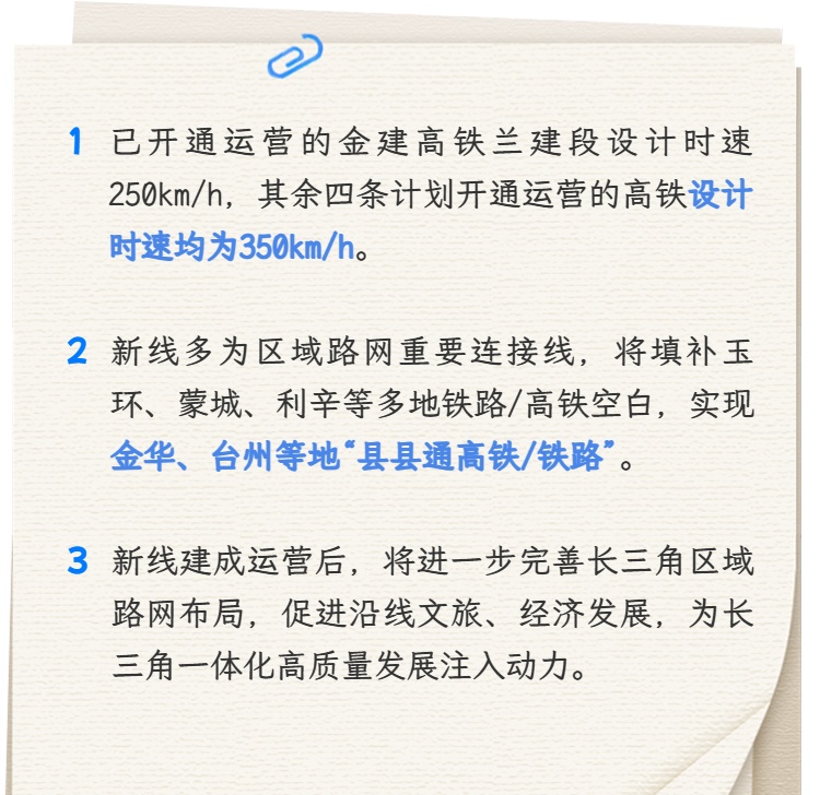 中国铁路上海局集团有限公司(以下简称“上铁集团”)介绍,2026年,“轨道上的长三角”建设全速起跑。除了已开通运营的金建高铁兰建段以外,还有淮蚌高铁、巢马城际铁路、杭台高铁温玉段、淮阜高铁等计划开通运营。来一同聚焦即将亮相的高铁新线吧~