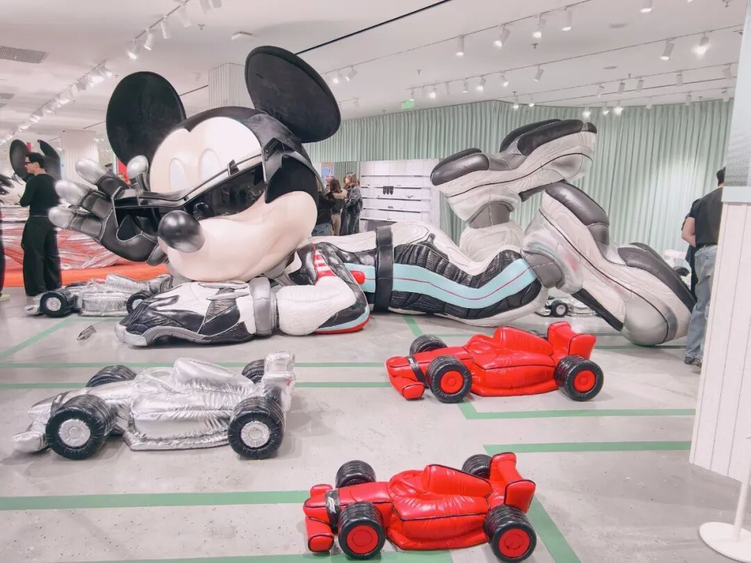 踏入其中,仿佛置身于一个现实与幻想交织的奇妙世界。真实的F1赛车霸气陈列,将充满能量的赛车激情引入城市中心,瞬间点燃现场氛围。巨型米奇形象装置与尖端F1赛车并置呈现,极速机械的冷峻与奇幻想象的灵动相互碰撞,开启了一场前所未有的全新体验。