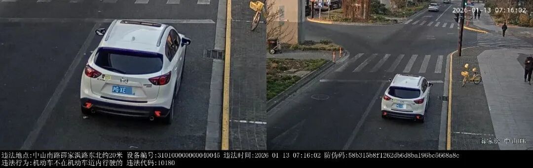 市公安局交警总队公开曝光:2026年1月13日7时16分,号牌为沪GXE***的小型普通客车在中山南路薛家浜路东北约20米,实施了“机动车不在机动车道内行驶的”违法行为。