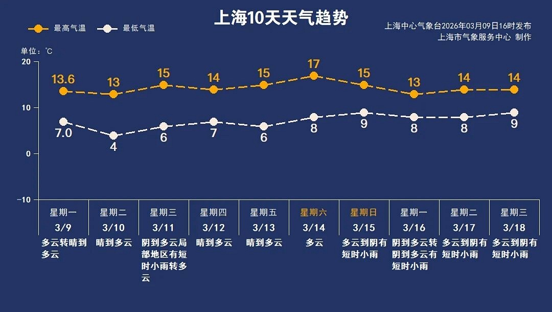 预计周六最高气温接近17℃,