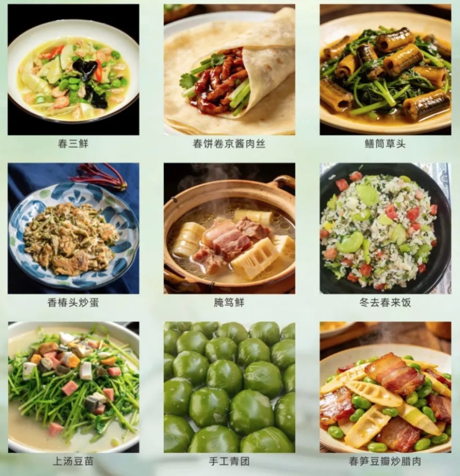 一口入魂的春三鲜,春笋、蚕豆、咸肉三大春日顶流齐聚,脆嫩、粉糯、咸香层层碰撞,鲜到骨子里,错过就要等一年。春分谷雨限定的香椿头炒蛋,头茬嫩芽脆嫩鲜香,搭配蓬松的鸡蛋,黄绿相间,满是春日香气。还有冬去春来饭、手工青团,以匠心凝春味于盘中,把江南春天的仪式感稳稳端上餐桌。