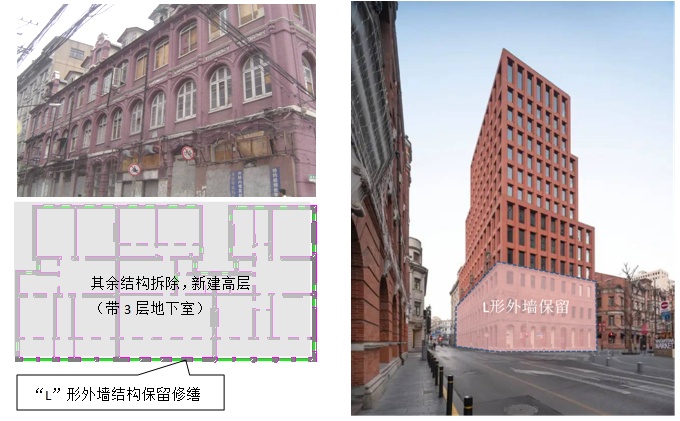 美丰洋行为被划定为上海局部保留类历史建筑,要求完整保留建筑位于圆明园路和北京东路的东、南两片建筑外墙,以及建筑南立面山花。在此基础上,内部新建起一幢高度为59.8米、地上十四层(地下一层)的混凝土框架核心筒结构高层建筑。