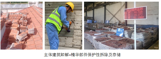 梦邨的3栋旧建筑为保留风貌建筑,要求场地内异地复建,同时对具有保护价值的部件,如铁窗、木屋架、门槛石、门匾、木楼梯等进行保护。因此首先对该建筑进行了激光3D扫描,对建筑进行保护性卸解,将保护部件临时存储,待复建时使用。既实现了建筑风貌的异地传承,又最大限度保留了历史建筑的核心文化载体。