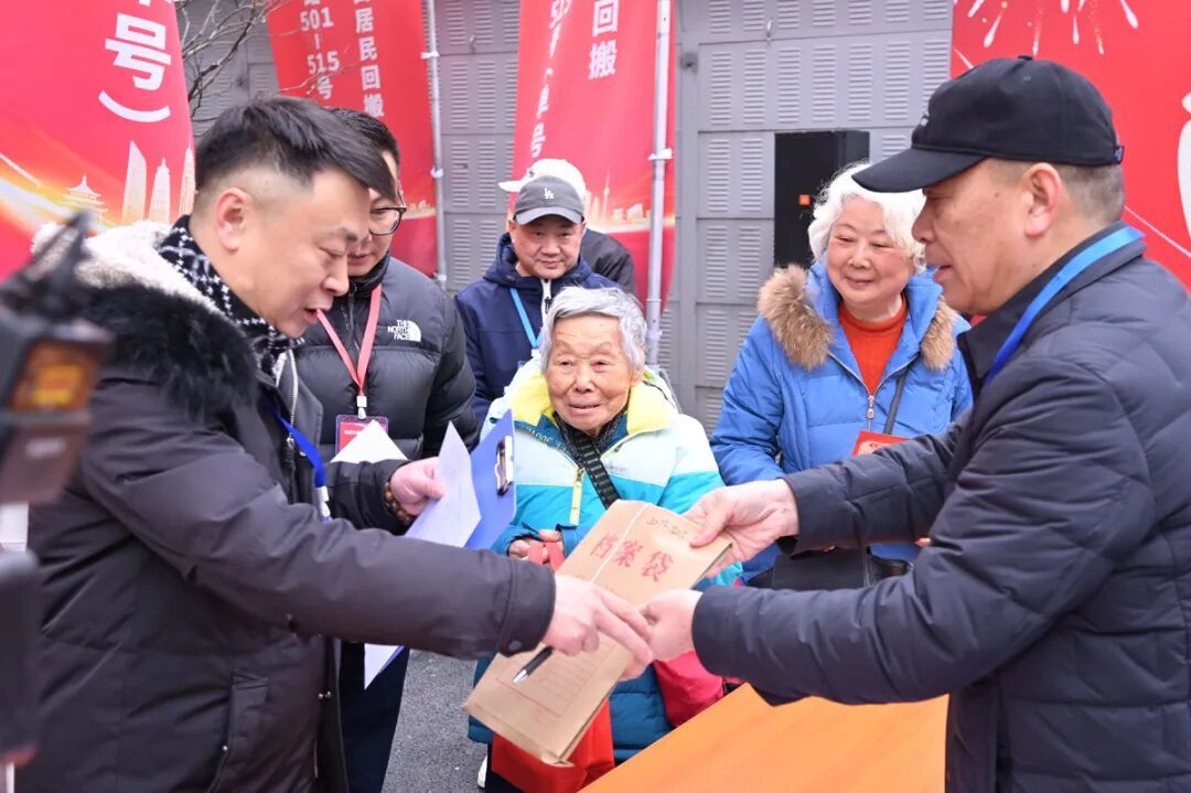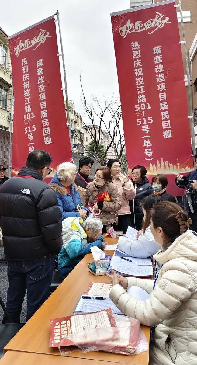 旧改圆梦换新居,3月3日,对于控江路 501-515 号(单号)“内江大板房”的居民而言,这是一个具有里程碑意义的日子——作为全市首个“原址改建+协议置换”项目,大家翘首以盼回搬入住的日子正式开启。当天上午,现场张灯结彩,洋溢着浓浓的喜庆氛围,不少居民早早来到新居入口处等待新房钥匙的交付,这不仅意味着160户居民喜提新居,更标志着该项目从“竣工交付期 ”正式转入“物业服务期 ”。延吉物业在竣工验收的第一时间,便积极筹备与细致安排迎接“老朋友”,让居民们感受到了回家的温暖。