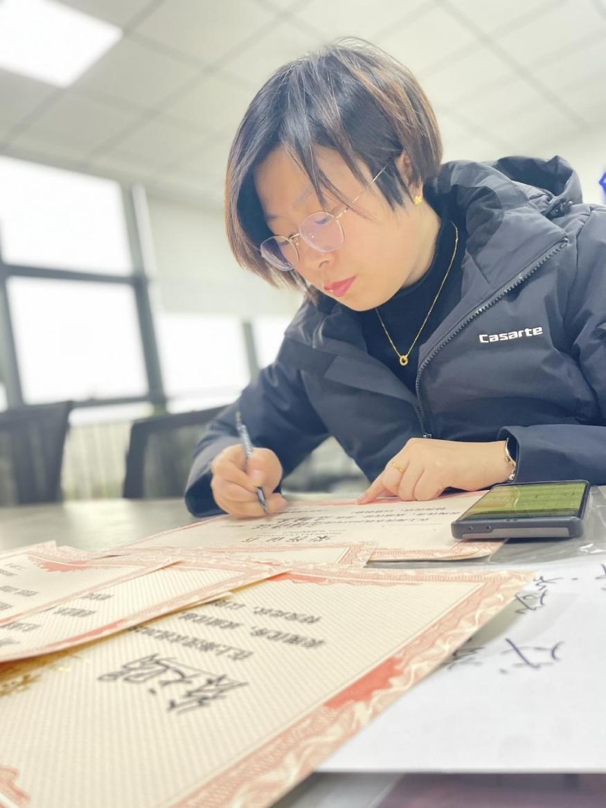 对于企业骨干与老员工,她始终满怀敬意、视作家人。每逢传统佳节,她都会与大家欢聚一堂、共话团圆;牵头表彰业绩突出、默默奉献的骨干员工,让付出被看见、让贡献被记住。在她的用心营造下,企业形成了尊重前辈、崇尚实干、老有所值、贤有所荣的温暖氛围。对需要特殊关照的员工,她更是贴心守护:夏日送清凉、寒冬递暖茶,员工受伤她第一时间探望,身体不适她积极协助就医、申请补助。“有困难,找环姐”早已成为全厂员工的共识。