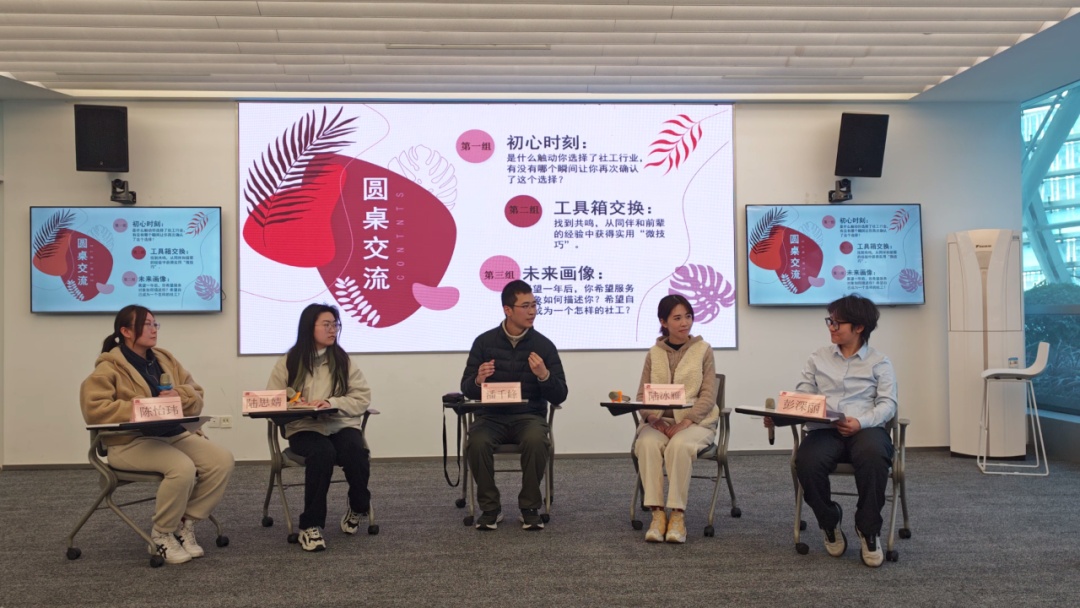 “初心·工具·画像”主题圆桌论坛上,新社工分组围绕“初心时刻”“工具箱交换”“未来画像”展开讨论。大家在交流中梳理了入户沟通、矛盾调解等实用技巧,也描绘了成为“可靠、有温度”社工的职业愿景。