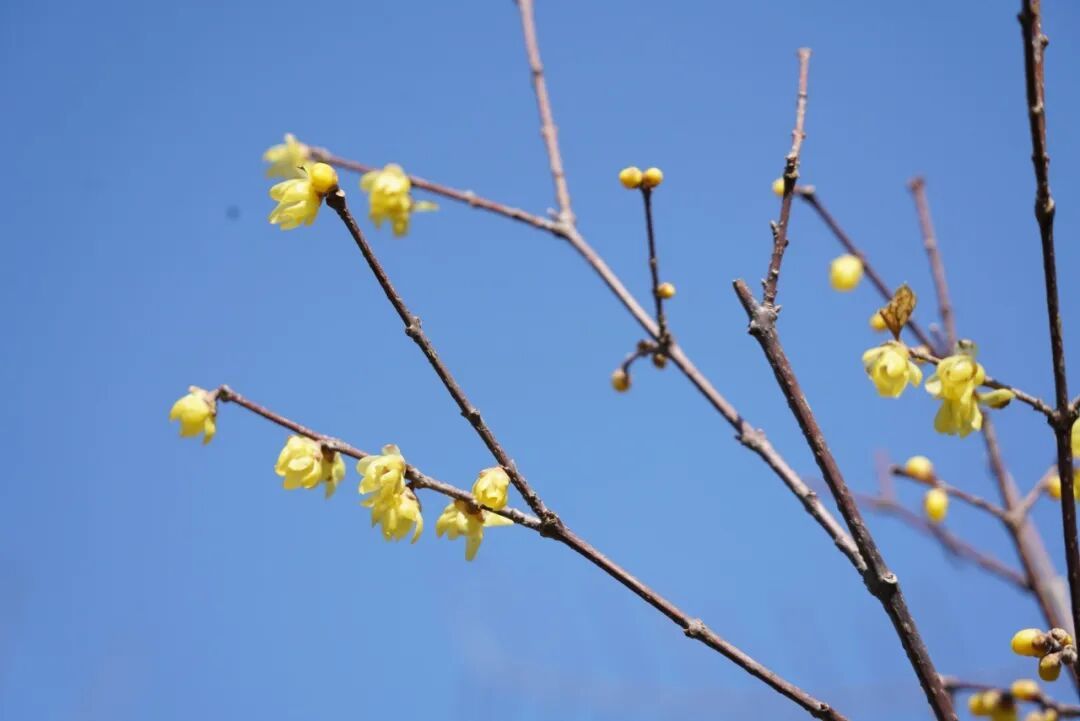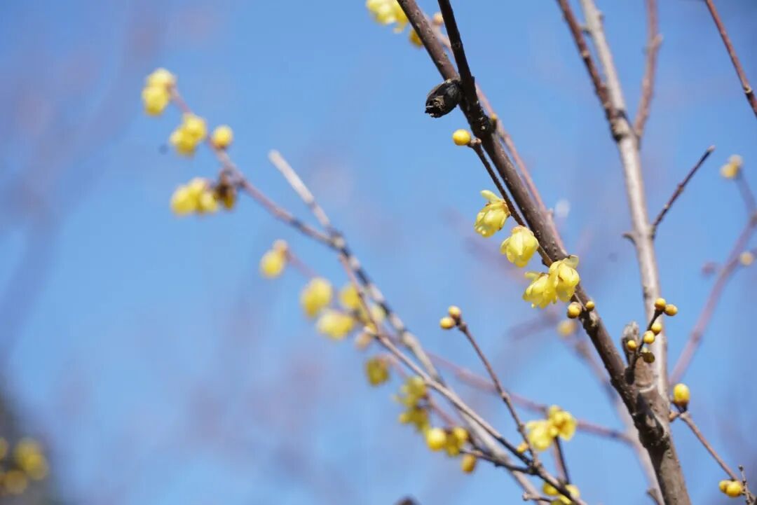 腊梅则温婉可人,金黄色的花朵缀满枝头,在微风中轻轻摇曳,花香浓郁却不张扬。