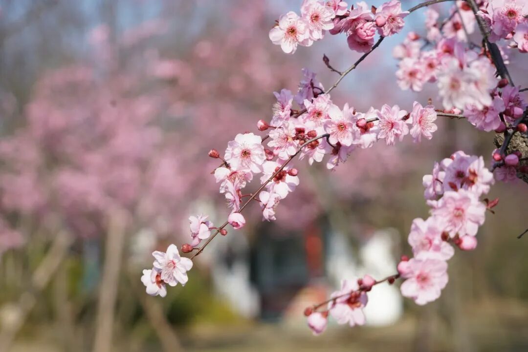 梅园里,千株梅花竞相绽放,红的热烈,白的清雅,黄的温婉,在这个惊蛰时节,以最美的姿态迎接着每一位踏春人。