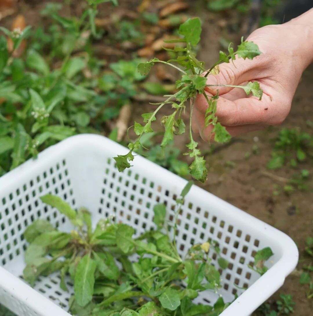 在桔林间割一把鲜嫩草头,田埂边挖一篮肥嫩荠菜,指尖沾着泥土与春意,把自然的馈赠轻轻收进篮中