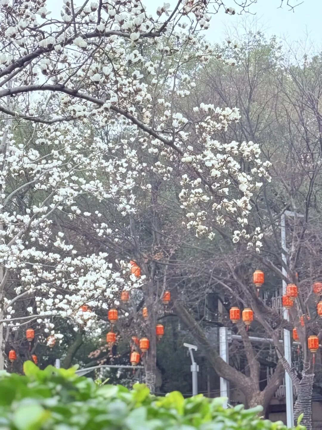 上海大观园外,白玉兰已悄然盛放——花树亭亭,似白羽栖枝,如玉盏高悬,风过处暗香浮动,款款生香~