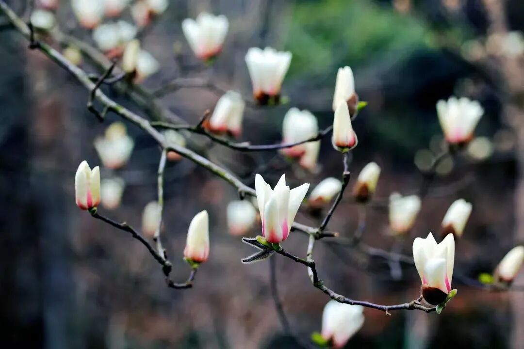 作为早春标志性花木,玉兰先花后叶,花姿高洁、香气清幽,与江南人文底蕴相得益彰,勾勒出“亭台藏秀色,玉兰待春风”的诗意画卷。