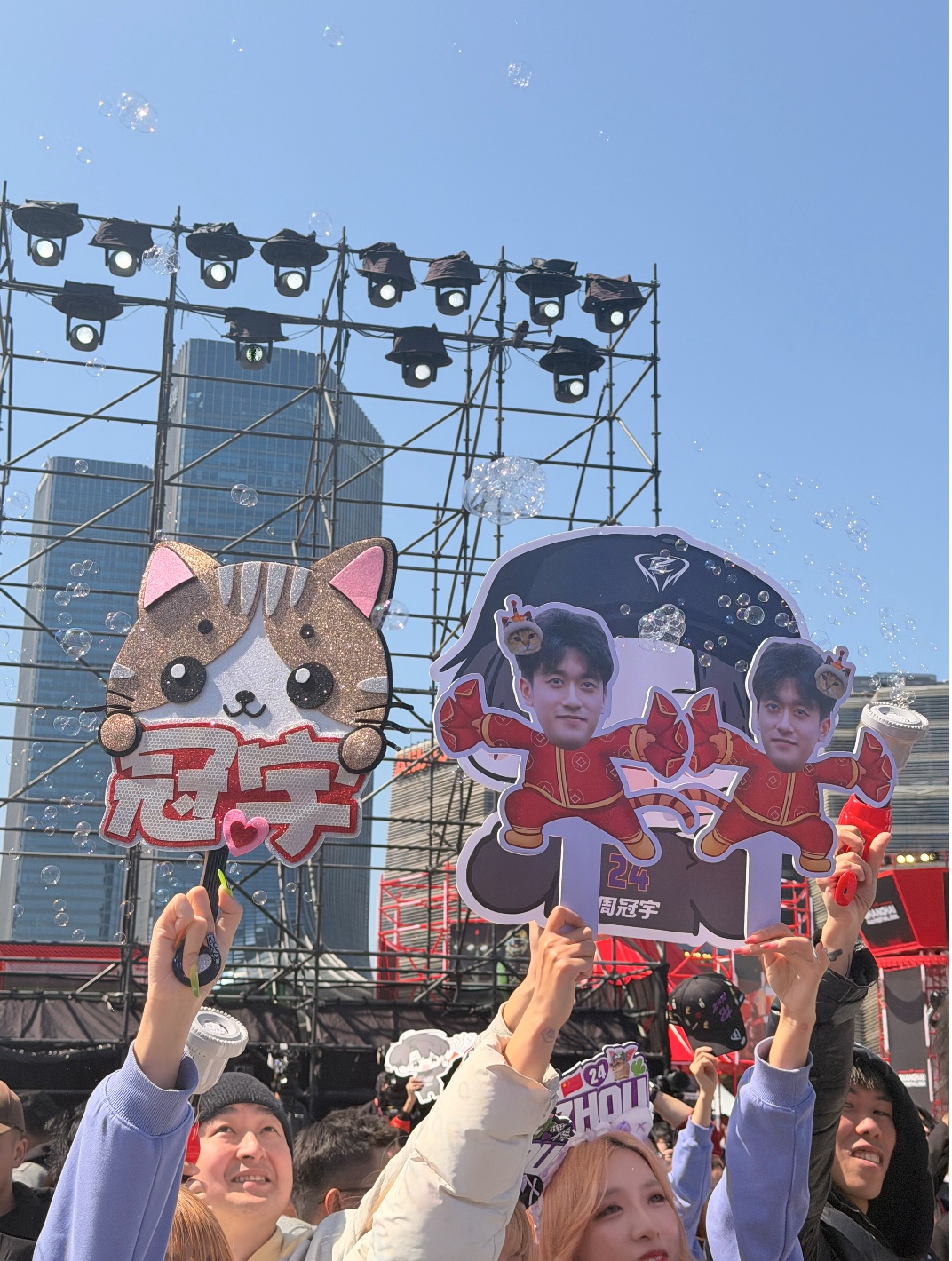 粉丝手持周冠宇与爱猫图片现场应援