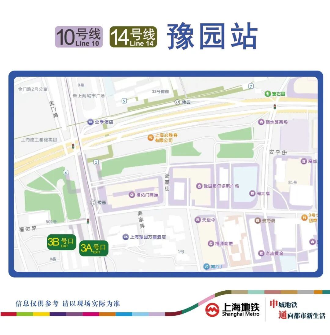 10、14号线豫园站3A号出入口已于近日封闭改造。在此期间,乘客可通过其他出入口进出车站。由此给您带来不便,敬请谅解。