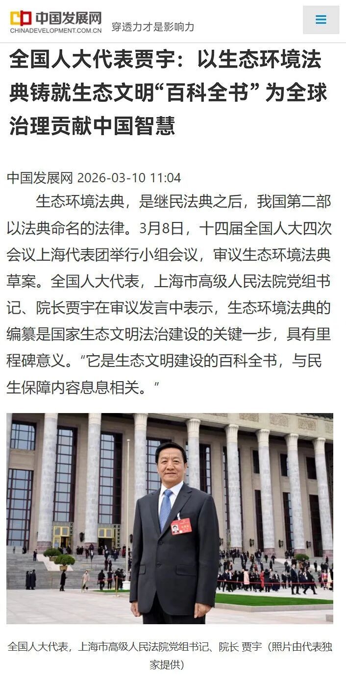 全国人大代表贾宇:以生态环境法典铸就生态文明“百科全书” 为全球治理贡献中国智慧