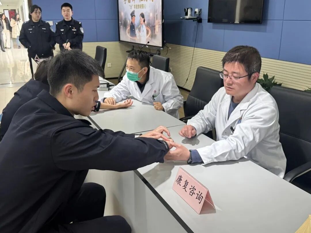 活动现场,不仅有专业的诊疗,更有暖心的细节——医生们主动留下联系方式,方便民警随时咨询健康问题,并细致告知临汾社区卫生服务中心康复科的开放时间和相关信息。