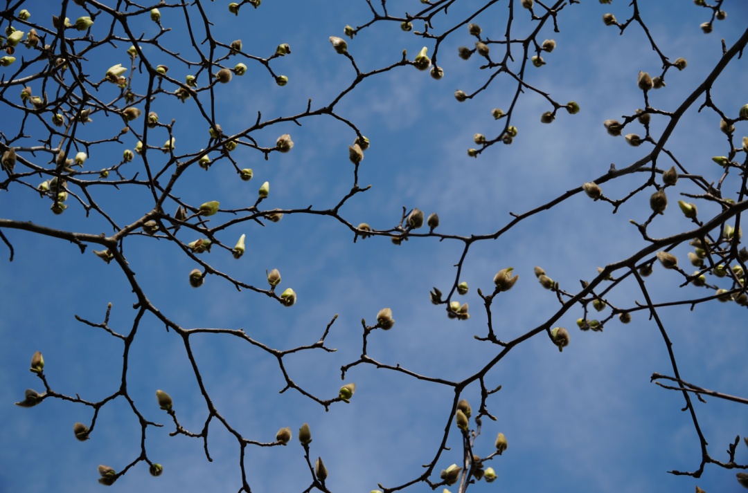 枝头还有几朵未开放的,毛茸茸的,尖尖的,像小猫竖起的耳朵。一盏盏花苞好似点缀在枝头的小灯笼,随着微风缓缓摇曳。