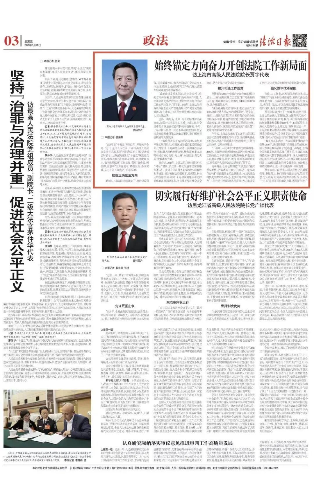 贾宇表示:“法治是中国式现代化的重要保障。新征程上,我们将始终锚定方向、笃行不怠、守正创新,以更高水平的司法担当,为实现‘十五五’良好开局贡献新力量、展现新作为。”