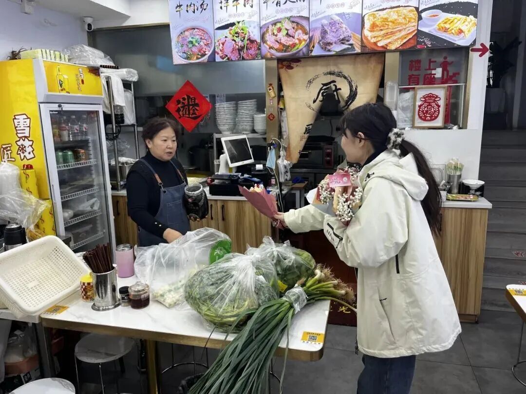 在“星火相传·爱在虹梅”雷锋侠·益玫瑰活动中,街道特别关注新兴就业群体中的女性劳动者,为就业群体送上节日慰问品;在上海上美化妆品股份有限公司直播间,“雷锋侠”们为专注工作的女主播送上娇艳的康乃馨;在街头巷尾,一束束鲜花送到女骑手手中,致敬她们在平凡岗位上的闪耀光芒。