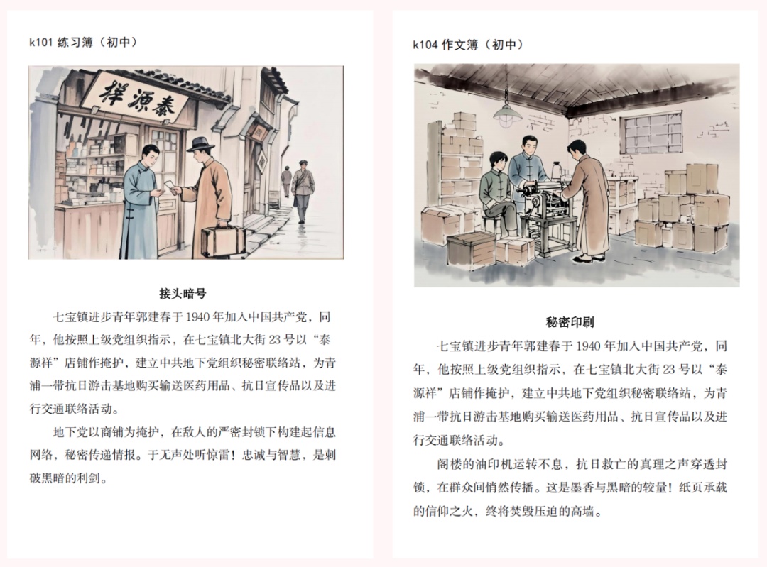 这批覆盖各中小学、各学科的练习本,由中共闵行区委宣传部、闵行区教育局共同精心策划打造,将本土红色故事与英烈事迹以漫画形式刊载于封底,让红色文化融入日常书写,以潜移默化的方式厚植学子爱国爱乡情怀,更是区域思政教育融入生活的创新实践。