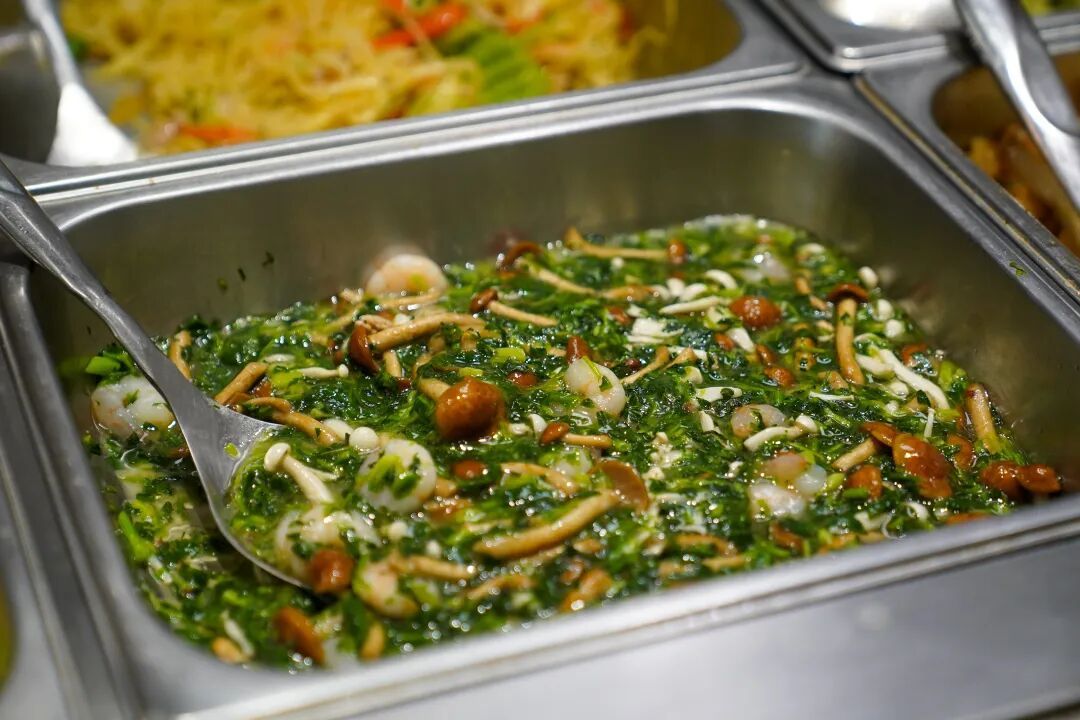 走进社区食堂后厨,新鲜春菜整齐摆放,春笋、香椿、蚕豆、荠菜等透着春日鲜活。厨师们有条不紊地处理食材,焯烫、翻炒、焖煮,将春菜的鲜甜牢牢锁住。