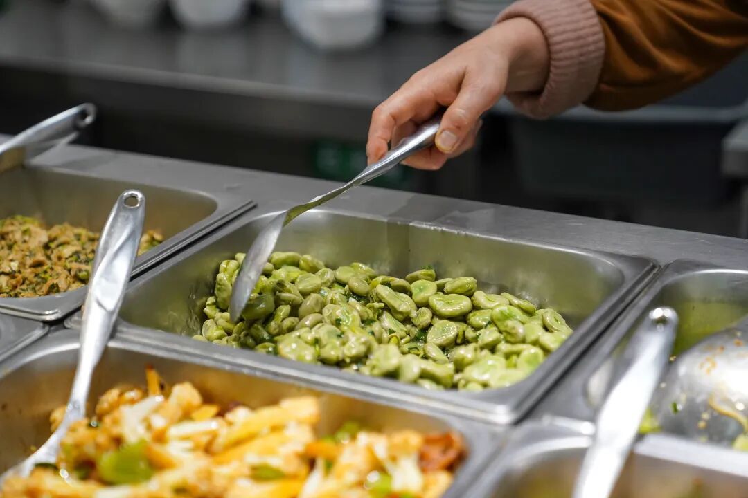 考虑到社区食堂的主要食客是老年群体,厨师长在烹饪过程中,特意做了适老化调整,严格落实少油少盐的烹饪原则。相比常规菜品,盐量减少20%,油量减少30%,所有食用油均选用非转基因产品,从源头保障老人的饮食安全。“春季的蚕豆、春笋,做法也以清淡软糯为主,更适合老年人。”