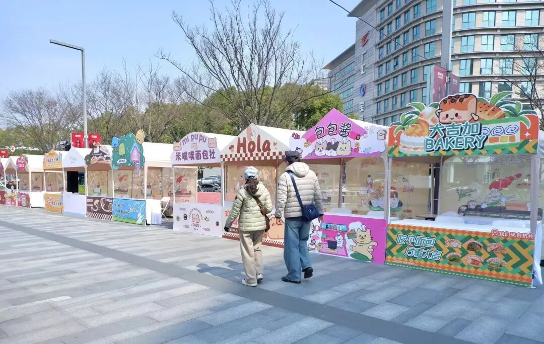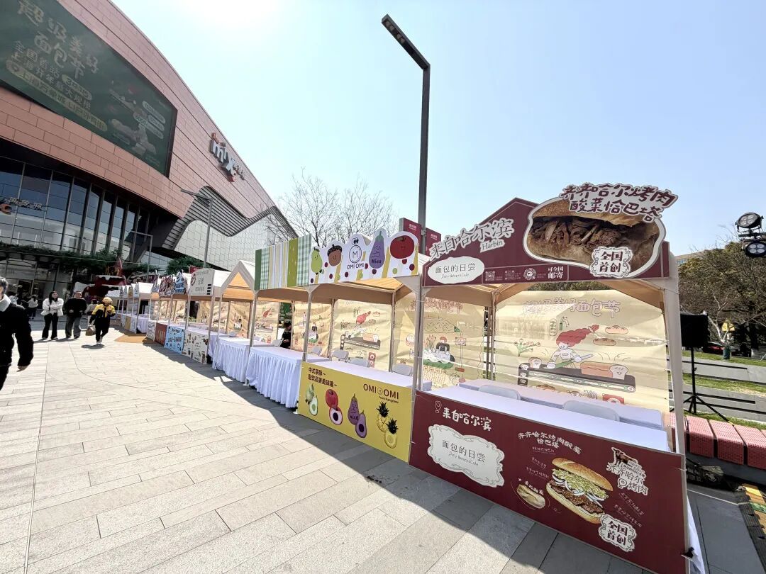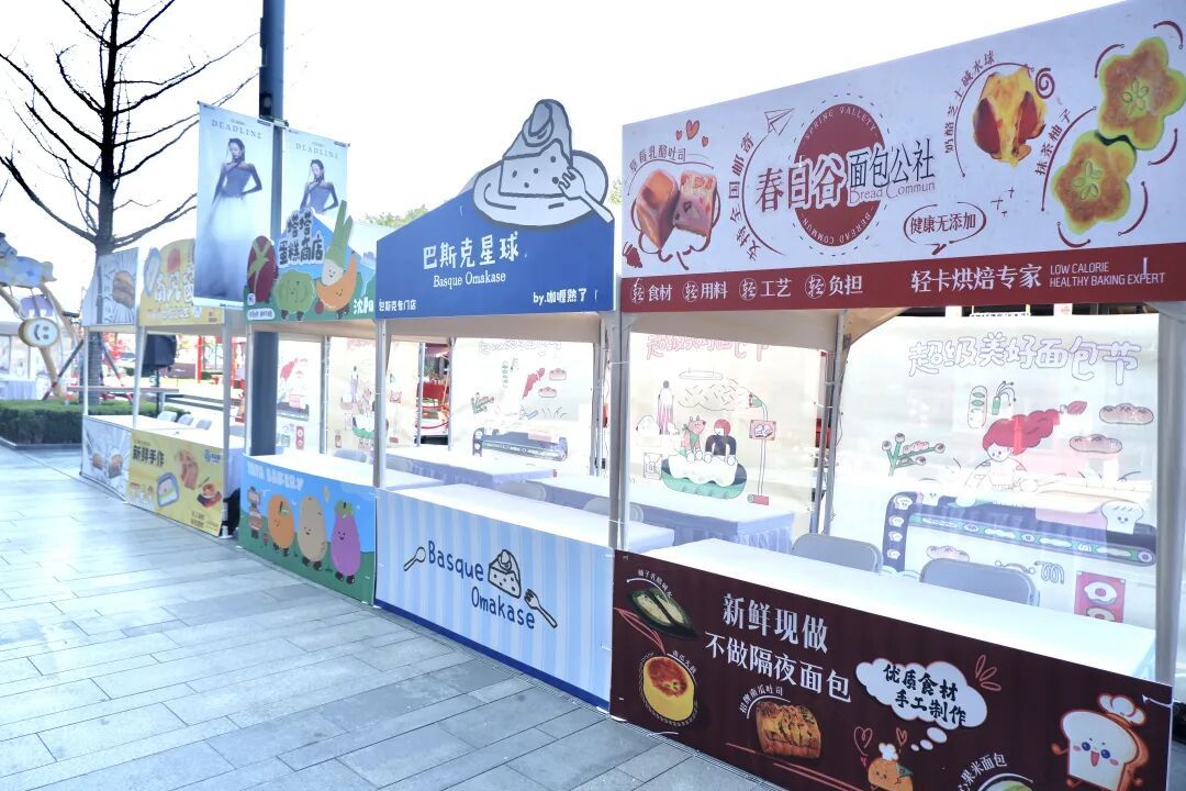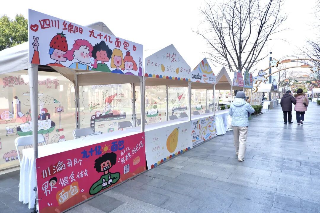 记者在现场看到,各摊位已全部搭建完毕,摊位设计中藏着“面包主理人”们的小巧思:有的画上了温馨可爱的卡通全家福,有的把自家主打产品印在摊位上,还有的亮出治愈标语——“吃个面包,万事大吉”。风格各异,恍惚间还以为穿梭在文艺市集。