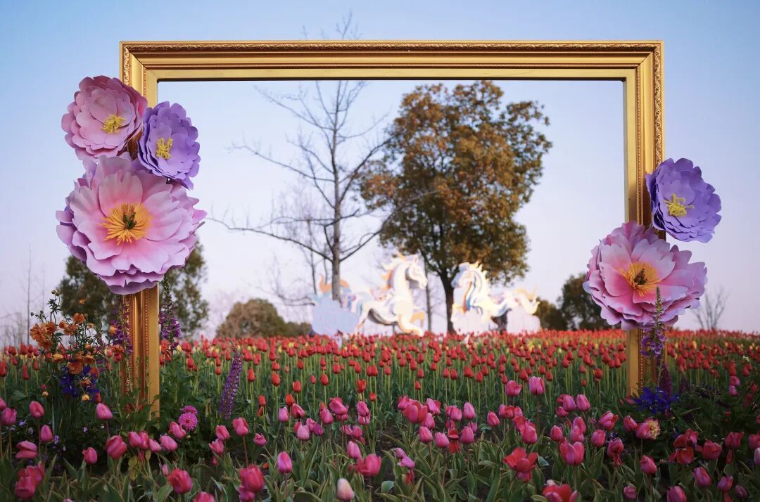 春分将至,万物复苏。在普陀区TOP中央公园,一场与春天的“深度邂逅”即将开启。今春首发震撼之作——“大地调色盘”超大型立体郁金香花海已初具风姿,花海总占地14000平方米,由18个品种的郁金香汇聚成绚烂之景,即将迎来最美时刻。 这片占地近两个标准足球场大小的郁金香花田,依托公园起伏的地形,顺着坡势层层铺展。从高处俯瞰,粉的、红的、橙的、紫的,各色郁金香被巧妙组合,宛如一条条流动的色带,沿着地形的“笔触”蜿蜒前行。所有花朵都盛放的时候,整个花海便成为一幅活色生香的水彩画。 花海内共精选了18个郁金香品种,涵盖了从淡雅单色到繁重复色的多种色调。红色系的法国之光、世界火等,橙色系的世界真爱、阿德瑞母,白色系则选取兰卡、斯普利突破、纯金,紫色系为紫衣王子,桃红色系有范伊克、拉里贝拉,粉色系包括巨人粉、荷兰设计和粉色热情,此外还有门童、普利泽、肉色范伊克等晕染色系品种。这些品种高低错落、错落有致,在微风中摇曳生姿,为春日景观增添了丰富的层次感。 “主角”是郁金香,“配角”也不含糊。为了进一步丰富花海的视觉效果,主路两侧还特意种植了低矮的紫色葡萄风信子,并套种了紫蓝色系的角堇。等到全部盛开时,这些小花会在脚边铺成一层“底衬”,既拓展了色彩空间,也让整体景观更具立体感。市民沿着园路漫步,可近距离欣赏不同品种的形态与色彩,感受春日生机。 作为中心城区开放式绿地的重要组成部分,TOP中央公园近年来持续提升生态景观品质。此次新增的郁金香花海,花株于去年12月25日全部种植完成,不仅延续了公园“行云流水”的设计语言,更以大地艺术的形式为市民提供了一处春日“打卡地”。如今,随着气温逐渐回升,花株已进入快速生长期,即将迎来盛放。公园方表示,郁金香最佳观赏期约可持续三周,届时整片花海将呈现最为绚烂的色彩。 春日短暂,花期有限。这片藏身于TOP中央公园的郁金香花海,正静待市民游客前来赴约,感受这份独属于春天的视觉馈赠。 地址:普陀区TOP中央公园(常和路、古浪路区段) 具体路线:可导航至敦煌路和古浪路的交叉口,从开放式绿地的任意入口进入即可 图中箭头标志处为花海具体位置