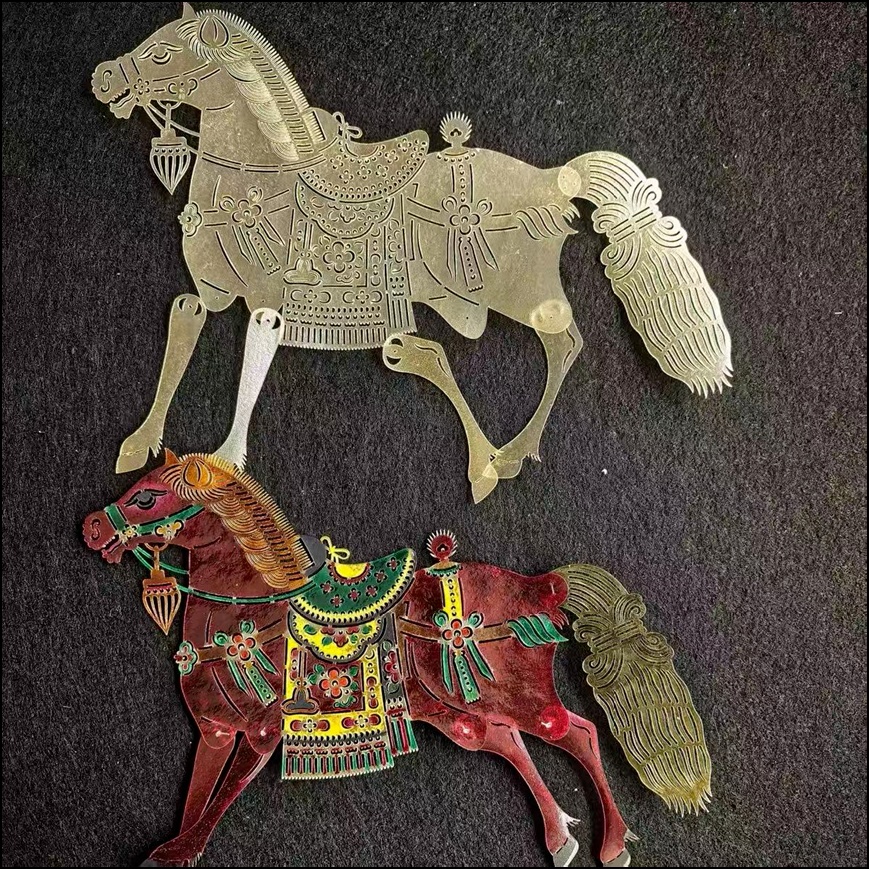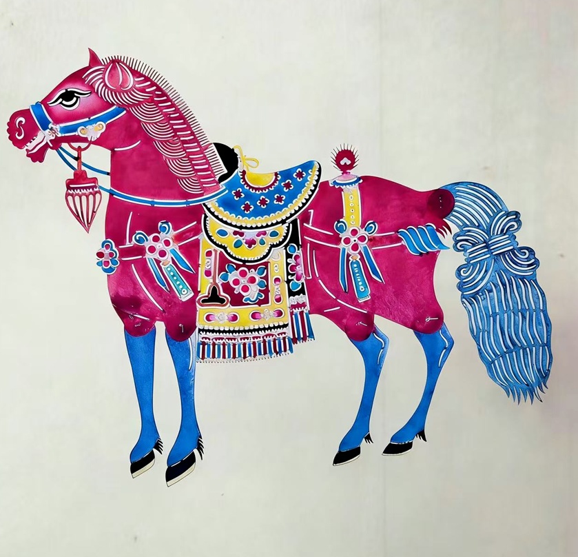 匠心制作以非遗工艺为标准,使用预处理牛皮马的造型,在老师指导下按照“描稿定型→绘画涂装→缀结装钳”的顺序分步完成属于自己的“马”年皮影。