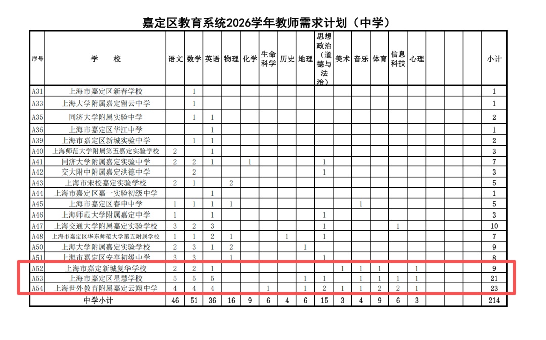 3月9日,2026学年嘉定区教育系统需求教师公告(第二批)发布。根据公告,上海市嘉定新城复华学校上海市嘉定区星慧学校上海世外教育附属嘉定云翔中学开始招聘。