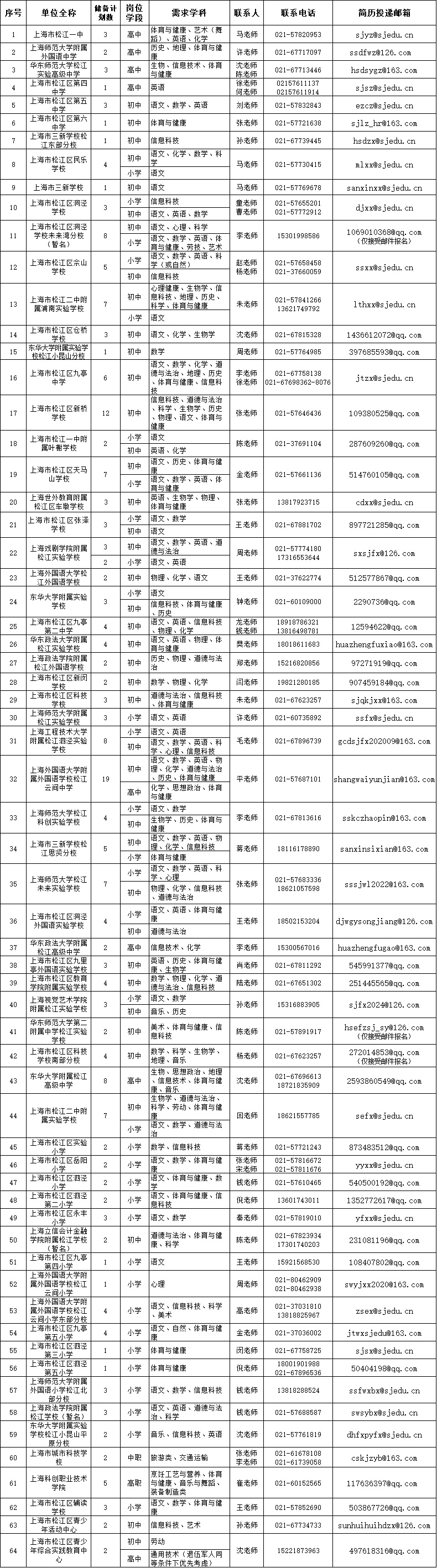 (注:招聘单位根据需求学科开展招聘,各学科具体招聘人数由招聘单位在“储备计划数”内统筹安排)