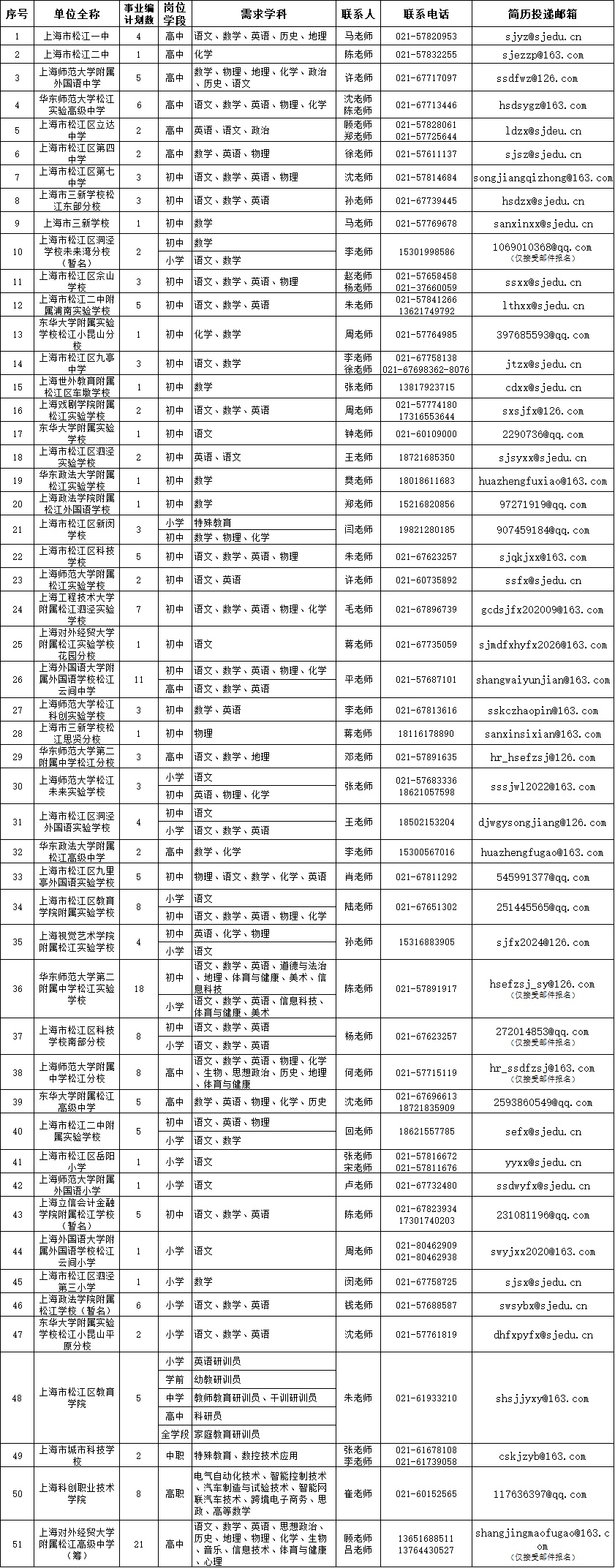 2026年松江区教育系统
