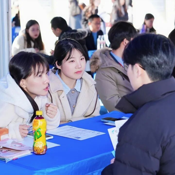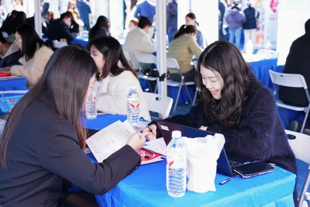 下午1时30分,招聘会现场正式开放。毕业生们身着职业装,手持精心准备的简历,在心仪展位前有序咨询,围绕岗位要求、发展路径、薪酬福利等与企业代表深入交流,展现出上财学子扎实的专业素养和积极的求职心态。不少企业展位前排起长龙,招聘代表耐心答疑、认真筛选,与意向学生初步洽谈,现场达成多项求职意向。供需两旺的态势,为我校2026届春招工作迎来良好开局。