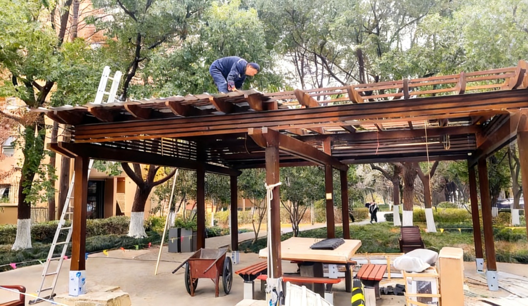 一座亭,承载几代邻里情。坐落于小区中心的这座凉亭,曾是小区居民的休闲据点。然而,随着岁月流逝,凉亭渐渐“老态龙钟”:主体支架锈迹斑斑,亭内木制座椅摇晃不稳、漆面剥落,既影响美观,也让居民难以安心落座。老人们想找个舒适的地方聊天晒太阳,孩子们在附近玩耍时,家长们也要捏一把汗。原本承载欢声笑语的凉亭,渐渐只换来居民路过时的一声叹息,也成了社区环境的一道“伤疤”。