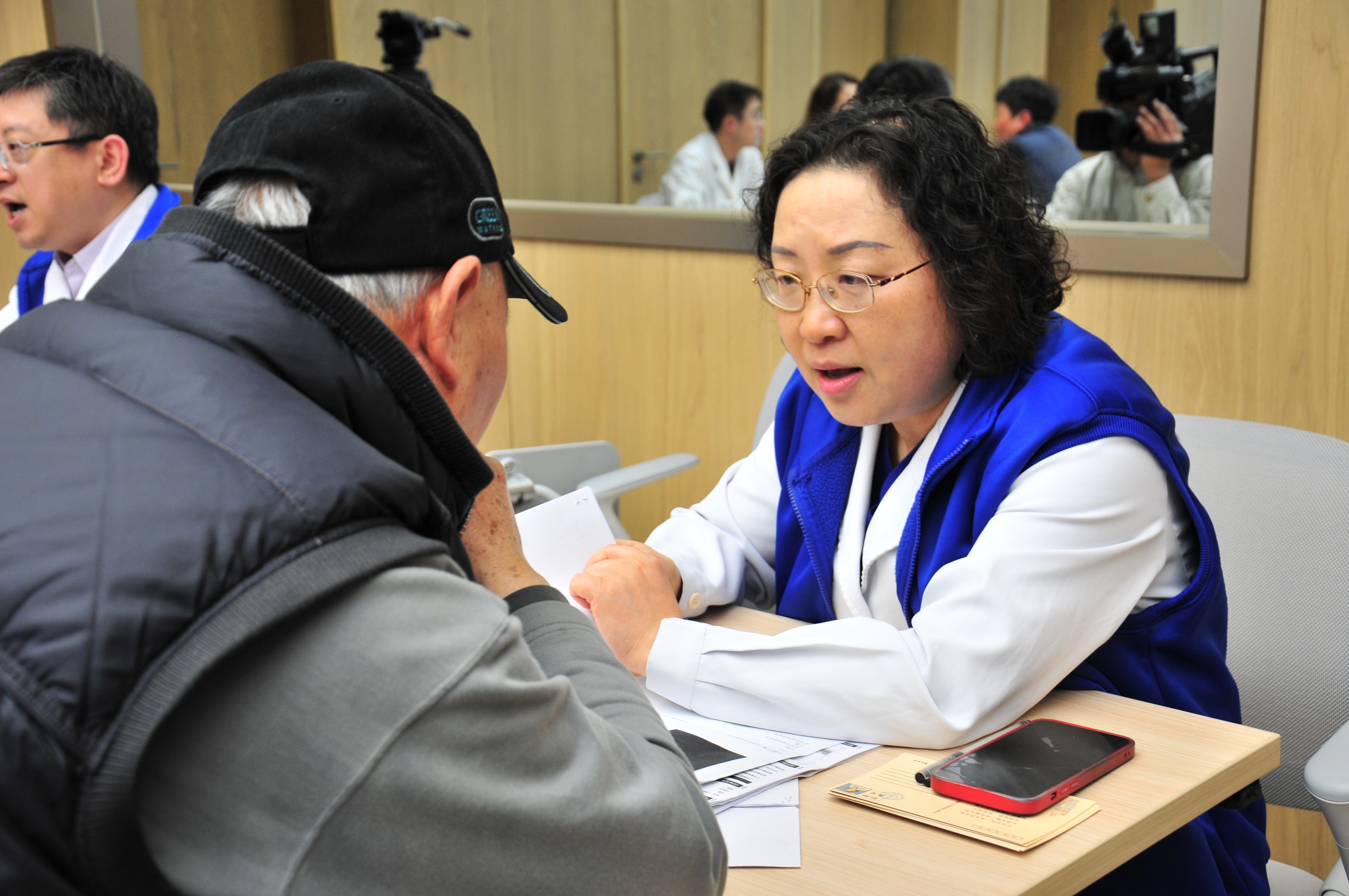 在义诊现场,瑞金医院肾内科的专家团队为居民提供了一对一的健康咨询服务。市民邱阿姨因糖尿病出现了尿急尿频的症状,专家仔细查看了她的检查报告后,给出了专业建议:“您要定期监测肌酐指标,每年进行1-2次尿检,同时养成健康的生活习惯,这对预防肾脏疾病非常重要。”邱阿姨认真聆听,对专家的建议表示感谢。