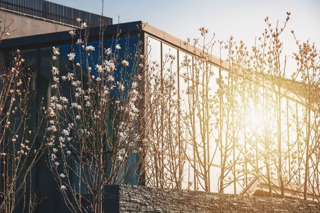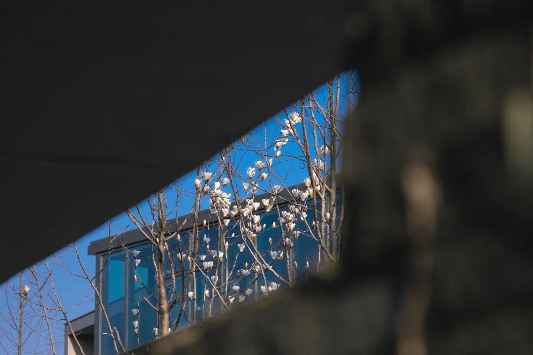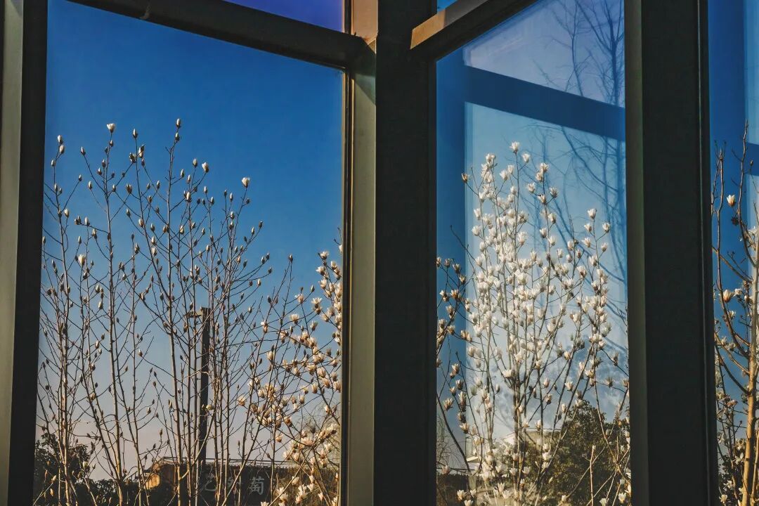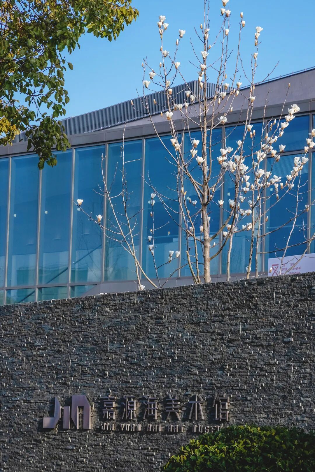 嘉源海美术馆美术馆旁,玉兰静静绽放纯白花朵与艺术建筑相映,清雅又出片