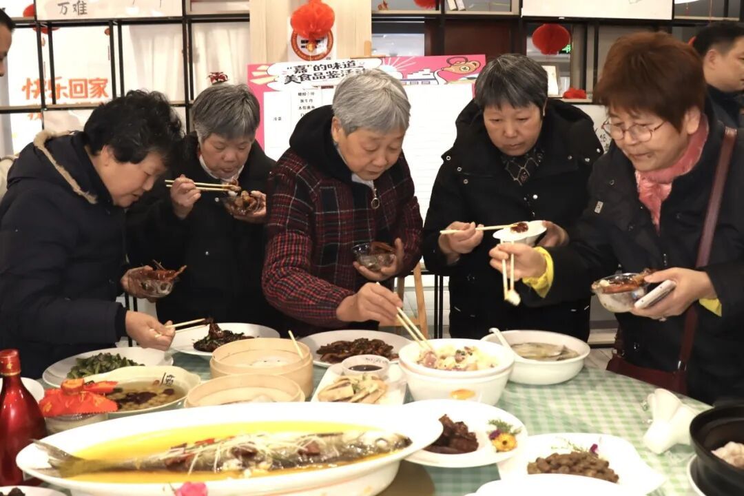 据悉,嘉定区食品安全协会前期共征集到200多道菜品,经过专家和市民评审层层筛选,最终选出当天展示的菜肴。市民代表和餐饮相关专业人员组成的大众评审团拿着碗筷来回穿梭,一边吃一边投出自己心中的“人气王”。“这个鸡很紧实,好吃!”“这个猪肉,有小时候的味道。”大家一边品尝,一边交流着对嘉定美食的理解。