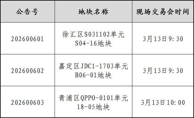 根据《上海市国有建设用地使用权出让沪告字[2026]第006号公告》的规定,现确定该公告现场交易活动安排如下: