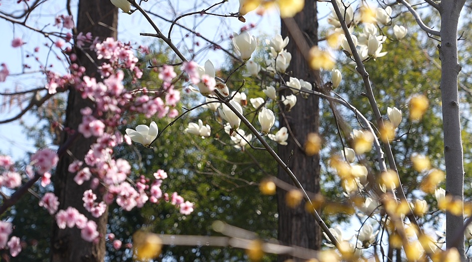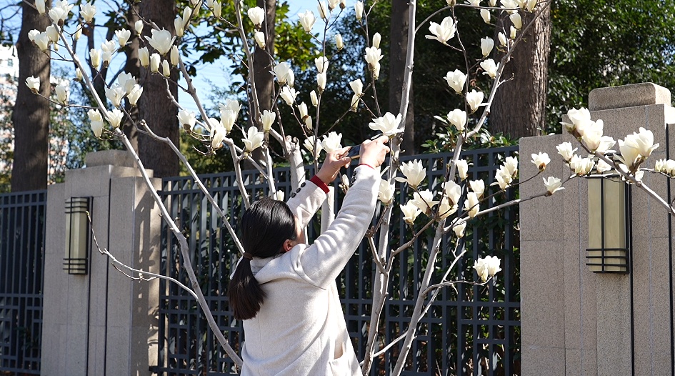 这两天,普陀区真如公园里出现了有趣的一幕,本该在深冬开放的蜡梅,枝头依然金黄一片,而本该在三月逐渐进入花期的白玉兰,已经迫不及待地开了满树。一个还没谢幕,一个已悄然登场,两季花卉就这么在枝头“撞”了个满怀。 走进真如公园,沿着园内小道向里,几株白玉兰已经悄然绽放,洁白的花瓣在阳光下格外醒目。而就在几步开外,一丛丛蜡梅依旧开得旺盛,凑近了还能闻到阵阵幽香。黄的蜡梅、白的玉兰,两季花卉同时绽放,形成了“金钟伴玉盏”的别致风景。 市民黄麒正举着手机对着枝头找角度,这几天她连着来公园,明显感觉到花一天一个样:“上周来白玉兰还是花骨朵儿,这周就全冒出来了,以前没有同时拍到过蜡梅和玉兰这两种花,所以觉得蛮稀奇。”热爱摄影的蒋东学一早就来了公园:“我很爱拍梅花,之前在南方过冬,一直遗憾没拍到今年的蜡梅,没想到早上来逛逛,发现蜡梅还没凋谢,而且白玉兰也开了,我想拍起来更有意思,就赶紧回家取了相机。” 为什么今年会出现这种“同框”画面?园开公司养护部门工作人员须磊介绍:“今年情况特殊,冬季比较温暖,造成蜡梅的叶子没掉,花开得晚;而白玉兰又感受到暖阳,‘急匆匆’地开了。一个走得晚,一个来得早,花期就这么撞在了一起。” 不过,这样的“同框”画面并不会持续太久。工作人员介绍,根据气象条件推测,蜡梅与玉兰同时绽放的景象,最多还能维持十天左右。趁着蜡梅尚未谢幕、玉兰刚刚登场的短暂窗口期,不妨走进公园,感受冬日余韵与早春气息在枝头交汇的别样景致。 真如公园地址:普陀区大渡河路1894号(近铜川路)