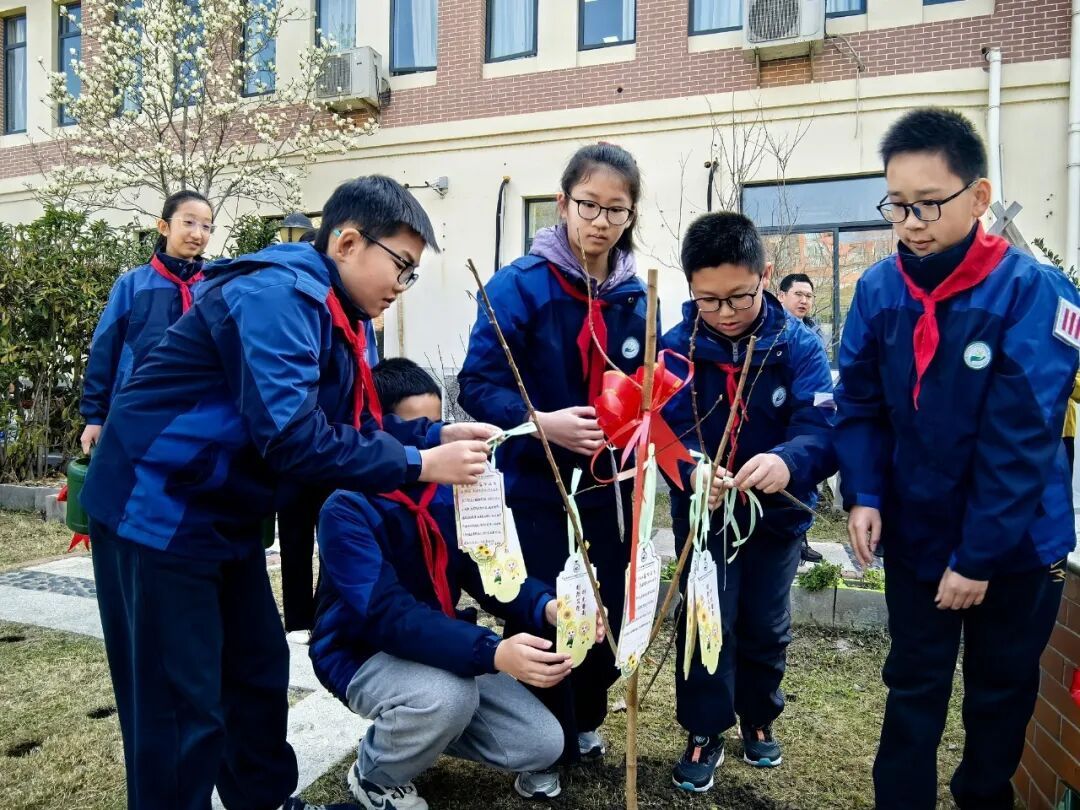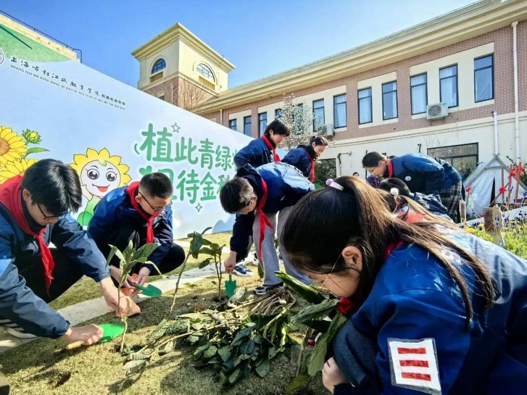 春和景明,播种希望。3月11日,松江区教育学院附属实验学校(松教院附校)开展植树节主题活动,师生携手在校园农场挥锹植绿,不仅种下杏树、李树、金桔、枇杷等树苗,更通过征集学生建议,为今年9月即将启用的初中部新校区绿化提前规划,让“添绿”与“育人”深度融合。